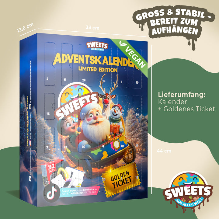 Adventskalender Vegan von Sweets aus aller Welt- Veganer Adventskalender 2025 - Vegane Süßigkeiten mit Schokolade, fruchtigen, sauren & salzigen Süßigkeiten (XL)
