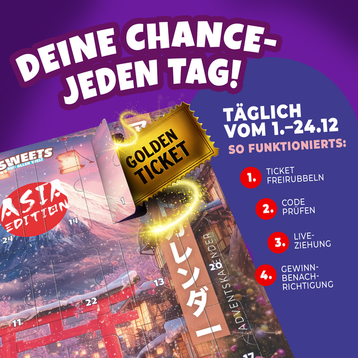 - DEINE ASIA REISE: 24 Tage voller Genuss mit Snacks aus Japan, Korea, Thailand & mehr – jeden Tag eine neue Überraschung!