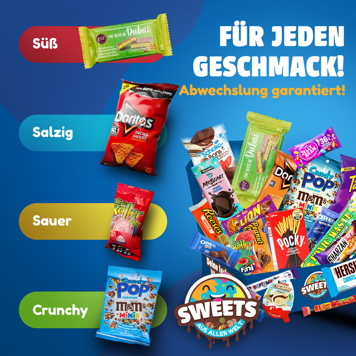 Bei Sweets aus aller Welt legen wir Wert auf höchste Qualität. Alle Produkte werden sorgfältig ausgewählt und direkt aus ihren Herkunftsländern importiert. Unsere Snacks sind nicht nur frisch und original, sondern stehen auch für Geschmack, dem du vertrauen kannst. Und falls du nicht 100 % zufrieden bist, greift unsere 30-Tage-Geld-zurück-Garantie – versprochen.